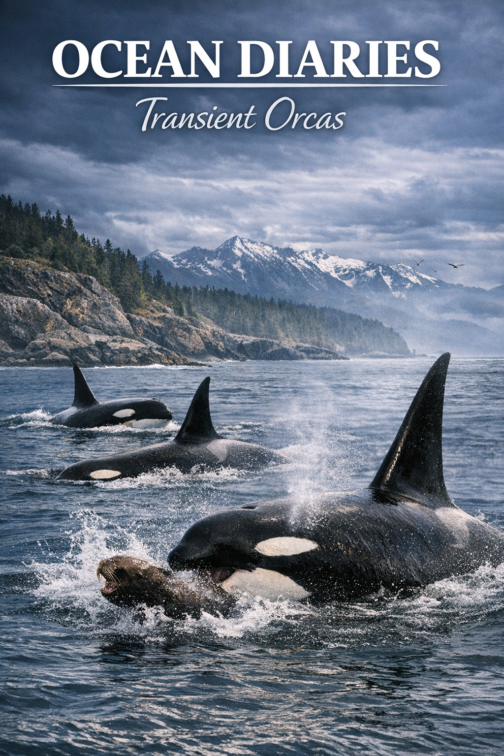 Transient orcas — officially known as Bigg’s killer whales — are the marine‑mammal‑eating ecotype of the North Pacific. They move quietly along the coasts of Alaska, British Columbia, Washington, Oregon, and California, hunting seals, sea lions, porpoises, and even large whales. Their world is defined by stealth, strategy, and fluid social groups that differ sharply from the stable family pods of Resident orcas.